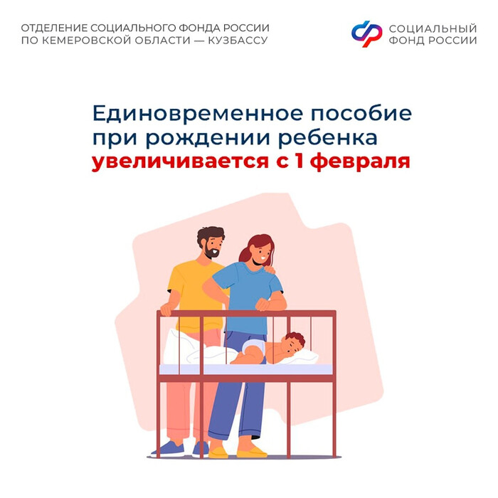 С 1 февраля 2026 года единовременное пособие при рождении ребёнка будет проиндексировано и с учётом районного коэффициента составит в Кузбассе 36 900 рублей.
