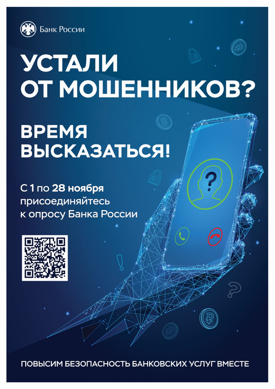 В целях определения степени удовлетворенности населения уровнем безопасности финансовых услуг, оказываемых организациями кредитно-финансовой сфер, Банк России проводит опрос с 01 по 28 ноября.