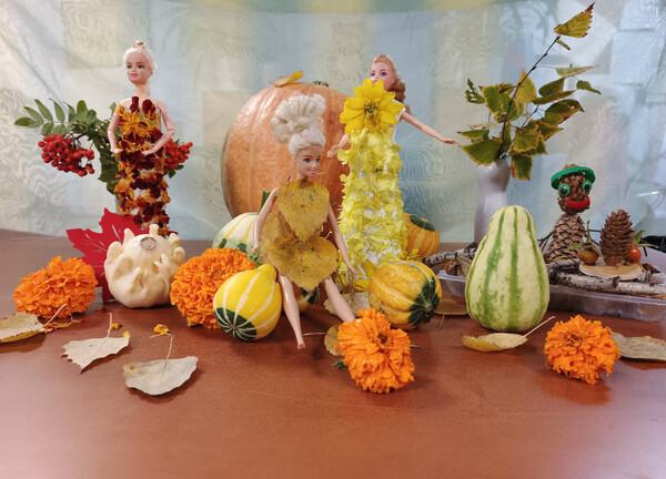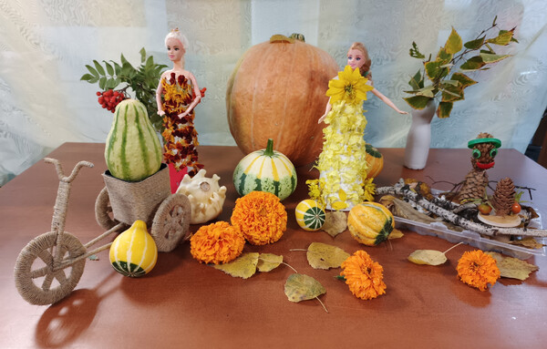 Осень – красивая пора листопада, созревания ягод рябины, овощей, фруктов. Всё разнообразие и богатство природного мира можно не только созерцать, но и использовать в творческом выражении. Работа с природным материалом заключает в себе большие возможности сближения ребёнка с родной природой, воспитания бережного, заботливого отношения к ней, формирования трудовых навыков, развития эстетического вкуса. Весь сентябрь мальчишки и девчонки на занятиях по труду работали с природным материалом, удивляли своей фантазией, оригинальностью и творческими способностями. Были придуманы поделки и композиции из овощей и фруктов, шишек, листьев, цветов и других видов природного материала. Все детские работы были собраны на выставке «Дары Осени» и получили восторженные отзывы. Вот такие замечательные выставочные работы были изготовлены нашими ребятами. | |