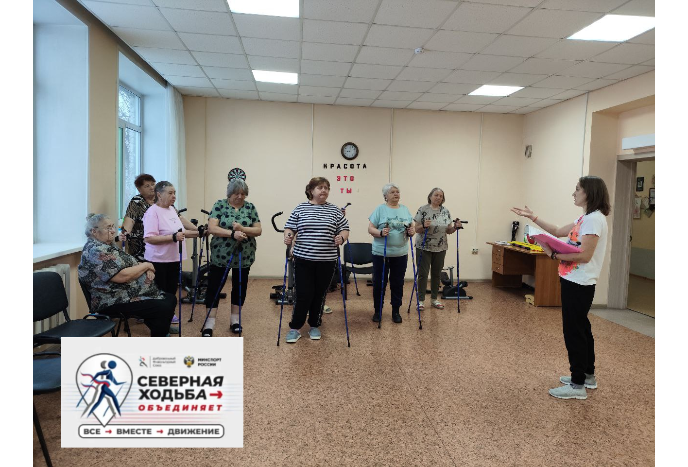 19.11.2025г. в рамках Всероссийского проекта «Северная ходьба объединяет», реализуемого Добровольным физкультурным союзом под руководством выдающейся фигуристки и общественного деятеля Ирины Слуцкой при поддержке Министерства спорта России и Министерства спорта Кузбасса, на базе социально-реабилитационного отделения дневного пребывания состоялось групповое занятие по скандинавской ходьбе для пожилых граждан и инвалидов. Участие приняли 10 человек. В ходе занятия реабилитолог учреждения провела инструктаж, и научила техникам ходьбы и правильного дыхания. Одна из участниц занятий поделилась своим мнением: «Я уже несколько лет занимаюсь скандинавской ходьбой и не раз замечала, как это положительно влияет на моё здоровье, поэтому всегда участвую в групповых занятиях, ведь они дают возможность разделить своё увлечение с другими людьми». Пожилым людям важно не прекращать заниматься физической активностью и после выхода на пенсию для сохранения своего здоровья. Скандинавская ходьба предоставляет удобный и доступный способ поддерживать физическую форму. Такой вид тренировок помогает укрепить мышцы и суставы, что может предотвратить развитие заболеваний опорно-двигательного аппарата и улучшает работу сердечно-сосудистой системы, снижая риск сердечно-сосудистых заболеваний. #севернаяходьбаобьединяет #доброфиз #минспортроссии #минспорткузбасса #ветераныспортакузбасса | |